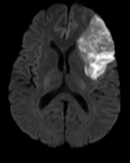 Fig. 2 a) Simulare detecție de infarct cerebral acut din RMN-DWI. Ref: [6]