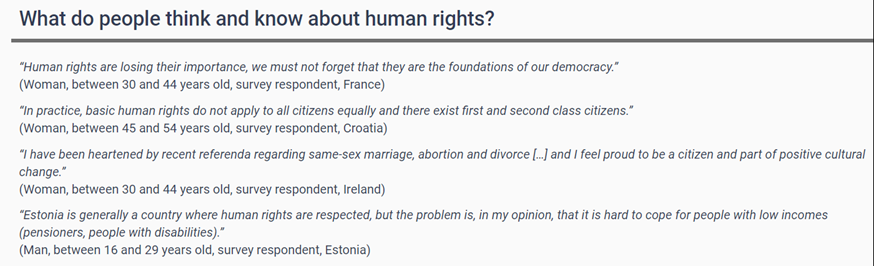 Ce reiese din studiul Fundamental Rights Survey din iunie 2020 este că, pentru unii oameni, drepturile fundamentale, democrația și statul de drept sunt concepte îndepărtate de viața și preocupările lor cotidiene.