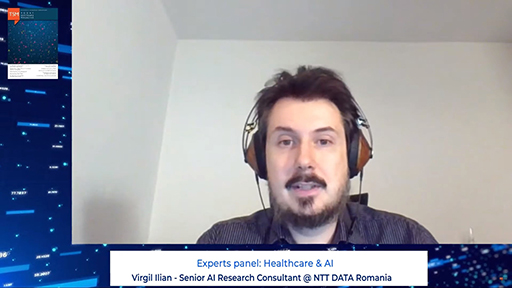 Virgil Ilian: În Healthcare nu sunt implicat direct în proiectele NTT DATA, dar am fost în trecut. În prezent sunt implicat în proiectele educaționale care au legătură cu diverse sisteme de training și homeschooling. Referitor la Healthcare, mă bucur că Radu a pus accent pe nevoia de segmentare, o nevoie persistentă de a utiliza AI în segmentarea imaginilor și a datelor. Nu există o soluție universală pentru așa ceva. Depinde cu ce lucrăm (celule, organe, gingii). Fiecare sistem are nevoie de customizări nu numai ale categoriilor de date folosite, dar și ale aspectelor particulare (calitatea imaginii, tipul imaginii). Mulți cred că AI-ul medical va înlocui radiologii, pentru că se uită faptul că un AI medical este extrem de specializat, nu universal. Evident, asta nu înseamnă că nu putem reutiliza arhitectura, că nu o putem modifica, apoi re-antrena pe un set cu totul nou de date.