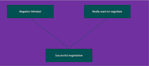 Putem să ne punem singuri piedici dacă nu suntem concentrați pe ideea de "negociere". Putem pierde totul chiar înainte de a începe discuția cu părțile implicate. Nu trebuie să ne fie mereu frică în a pune sub semnul întrebării starea de fapt (status quo) sau în a accepta că am fost respinși. Cel mai rău lucru care se poate întâmpla este ca părțile implicate să spună "Nu" în faza inițială. Chiar și așa, putem continua să negociem în funcție de cât de rapid ne putem raporta propriile obiective la motivele pentru care ne-au respins.