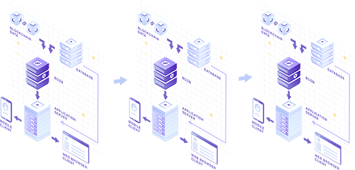 Abordarea în gestionarea datelor diferă. De exemplu, prin utilizarea pentru transferul bazei de date nu se șterge nicio înregistrare, întreaga structură fiind păstrată intactă. Migrarea bazei de date este inițiată numai după ce sunt implementate modificări minore din partea clientului. O abordare minim invazivă aduce o gură de aer proaspăt atât de necesară sistemelor vechi, unde schimbările sunt dificil de implementat. Dar prin simpla implementare a câtorva conectori, un sistem vechi va beneficia de tot ceea ce blockchain are de oferit.