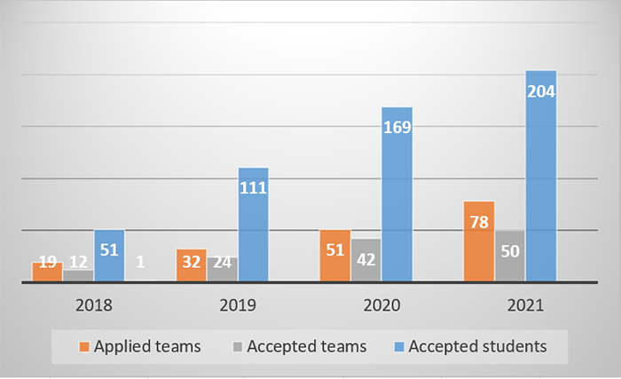 La început, competiția a fost una locală cu 12 echipe din Cluj-Napoca. Ediția 2019 a fost primul pas spre o deschidere la nivel internațional, când am acceptat 24 de echipe din România și Republica Moldova. Anul trecut, am acceptat 42 de echipe din 5 țări europene, introducând competiția și în Bulgaria, Italia și Ungaria. La ediția a patra, am crescut și mai mult, acceptând 50 de echipe din 10 țări, incluzând Malta, Luxemburg, Grecia, Estonia și Suedia.