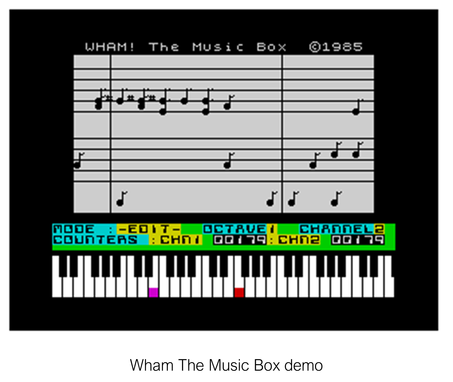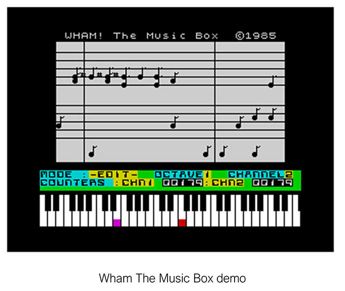 Pentru mulți europeni, din Est în special, prima expunere la software-ul de creație muzicală a fost un program pentru Spectrum-ul anilor '80 numit Wham The Music Box, produs de Melbourne House în 1985.