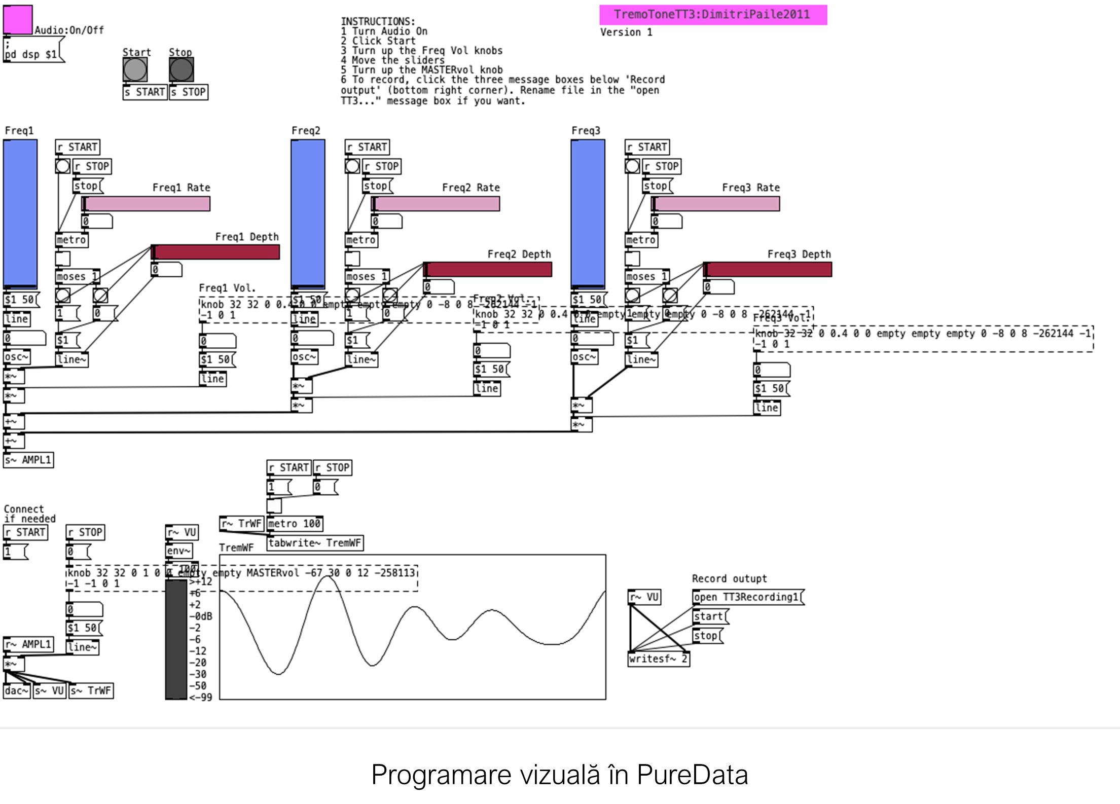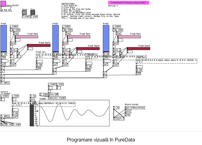 Acestor sunete li se aplică efecte (volum, delay, echo, low pass, hi pass - la nivelul fiecărui oscilator și global).