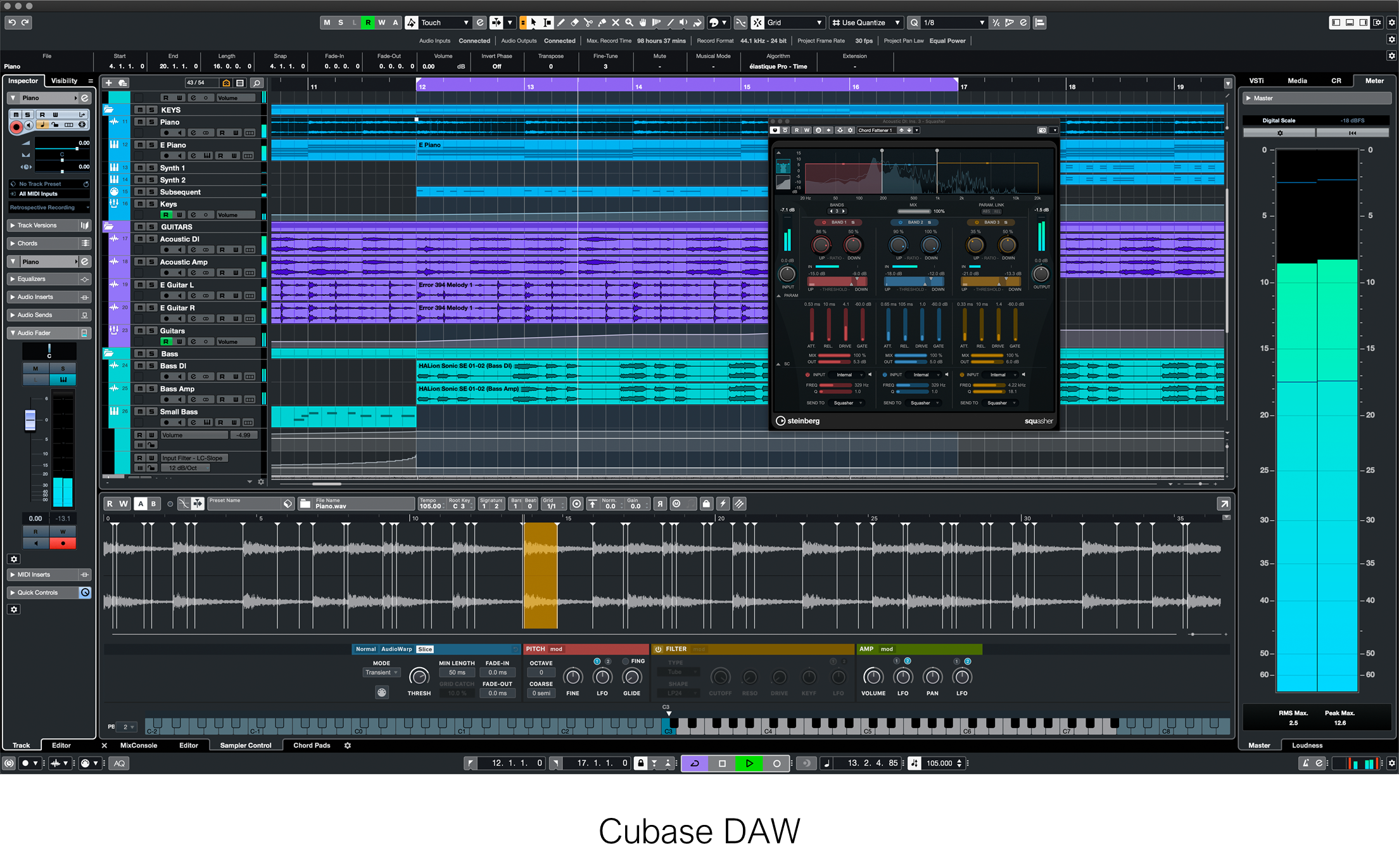 Atari ST beneficia de un coprocesor sonor mai puțin performant decât SID, dar fiind dotat cu porturi MIDI, a devenit imediat popular in industria muzicală și a permis apariția primului produs software profesionist pentru computere personale de producție muzicală (DAW = Digital Audio Workstation): Cubase al companiei germane Steinberg (fondată în anii '80) și încă un produs de vârf in ziua de azi. Produsul inițial se numea Pro 24 (un sequencer MIDI, creat inițial pentru Commodore), iar succesorul Cubase a fost dezvoltat începând cu 1989. Cubase a introdus workflowul care se utilizează și la ora actuală în multe produse: timeline, tracks, instrumente și un aranjament similar cu o consolă de mixaj din studio. Instrumentele se puteau înregistra live din keyboard sau de la o claviatură externă și puteau fi editate cut/copy/paste.