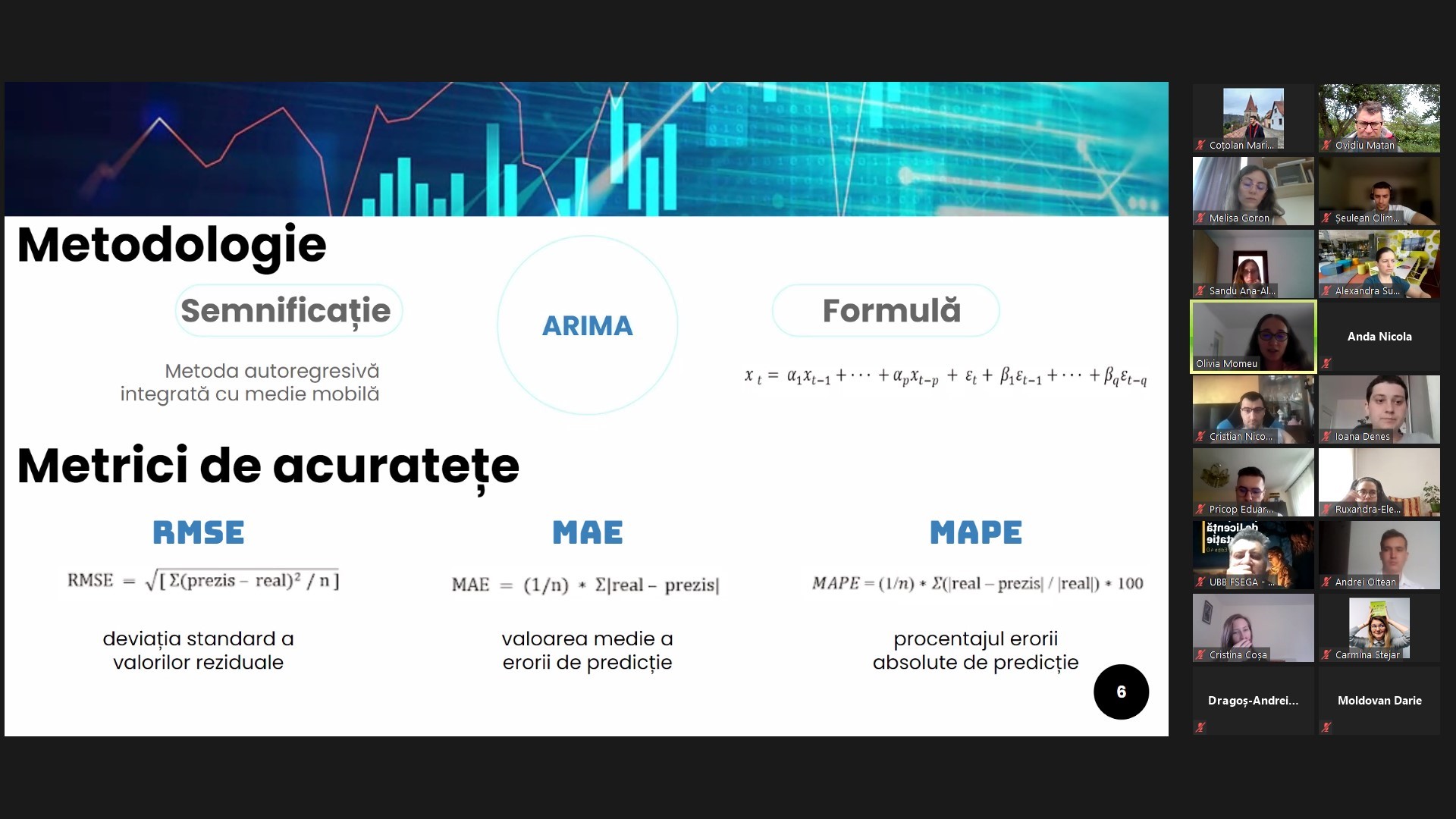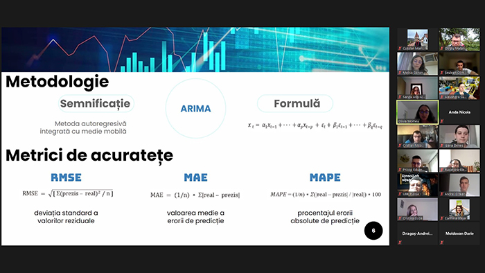 Aceasta a fost singura aplicație ce are legătură directă cu domeniul economic. Mi-ar fi făcut plăcere să văd mai multe astfel de soluții care au de a face direct cu materiile învățate la Informatică economică. Aplicația este în esență un notebook Jupyter (https://jupyter.org/) în care algoritmul de AI a fost antrenat cu datele de pe bursă obținute public de la Yahoo Finance. Predicțiile arătate au fost destul de bune, iar algoritmii au fost aplicați personalizat pentru fiecare companie în parte.