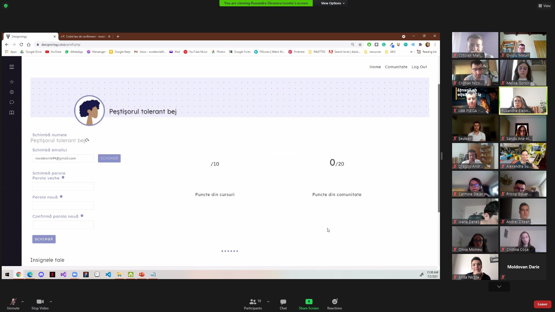 Reprezintă un site de învățare ce conține cursuri de UX. Etapa de proiectare a acestuia a inclus toate etapele de realizare ale unei aplicații comerciale: user flow, sitemap, wireframe, prototip. Un feature interesant a fost reprezentat de partea de securitate a identității fiecărui utilizator. Pentru a nu se expune numele real, fiecare user primește un nume generat precum: peștișorul tolerant bej.
