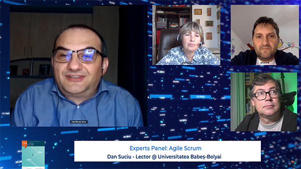 Dan Suciu: La facultate, am un curs pe această temă la masterat. Unul din lucrurile pe care le fac este să îi întreb pe studenți cum dezvoltă proiecte la companiile de unde vin, indiferent de companie. În proporție de 95%, răspunsul este că implementează Scrum sau Kanban sau altă metodologie, dar că nu este metodologia by the book. Fiecare masterand are regretul că nu se respectă varianta pură, că se fac compromisuri. Este normal să existe adaptări în funcție de cultura organizațională, de tipul de proiecte, de clienți.