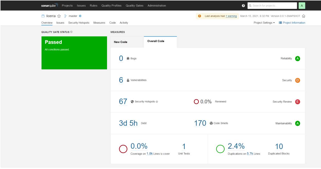 Figura 2: Raport SonarQube incluzând datoria tehnică