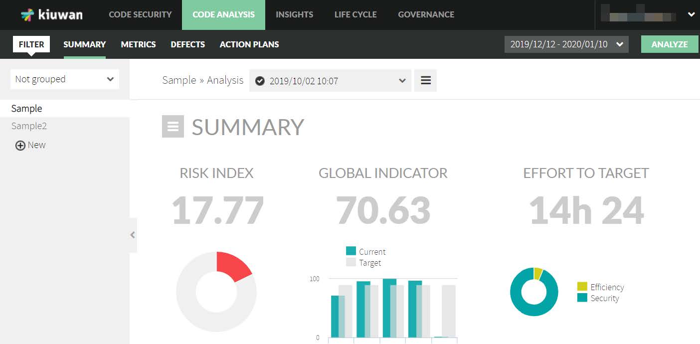 Figura 5: Exemplu de raport de analiză a codului generat de Kiuwan [3]