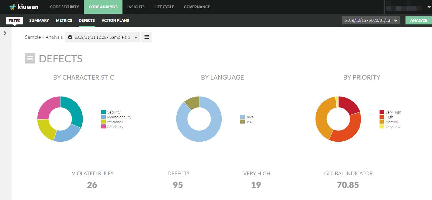 Figura 6: Exemplu de raport referitor la defecte generat de Kiuwan [3]