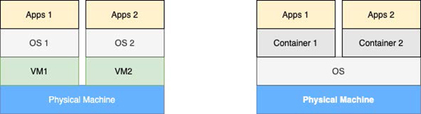 De asemenea, nu putem vorbi despre containerizare fără a vorbi despre mașini virtuale (VM). VM-urile există de mult timp, dar containerele sunt mai recente. VM-urile permit partiționarea resurselor mașinii fizice într-un mod care permite diferite sisteme de operare (OS) pe aceeași mașină fizică (alias bare-metal).