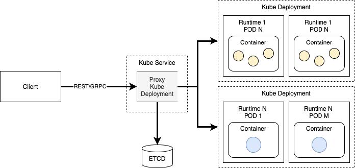 Proxy are rolul de transmite cererile către runtime-ul corect, realizând aceasta bazându-se pe metadata care este, de obicei, persistat într-o bază de date (cel mai probabil ETCD). De asemenea, poate îndeplini funcții de genul authentication (like OpenId Connect- token validation) și/sau autorizare.