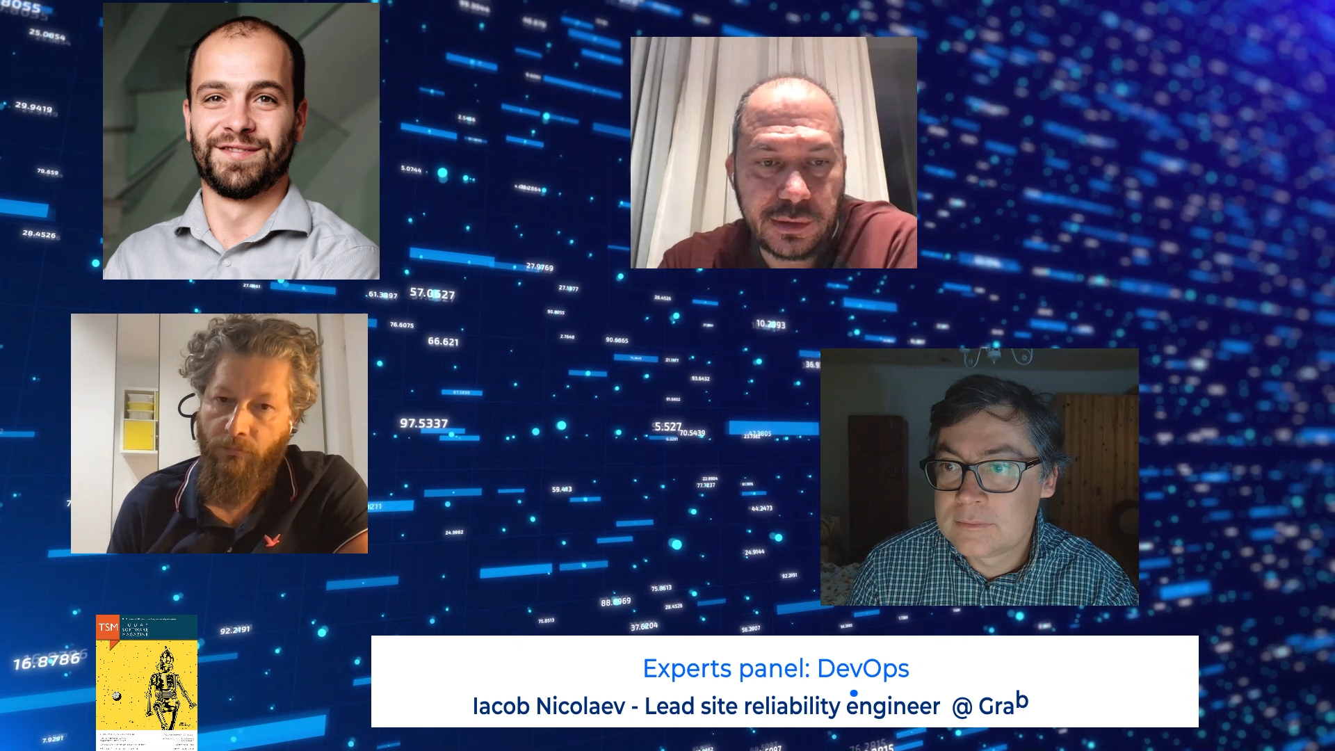 Iacov Nicolaev: Voi aborda problema din două puncte de vedere. Un punct de vedere este al practicilor și al filosofiei DevOps. Puppet face un raport anual al DevOpsului, aceștia definind deja etapele de evoluție a practicilor DevOps într-o companie. Etapa minimă este un GIT. Etapa ultimă, cea mai complicată, la care foarte puține companii au ajuns este aceea la care se apasă un buton și ai un deployment de aplicație. Acolo se termină DevOps, deoarece DevOps se preocupă cu aducerea codului de la programator la server. Un alt punct de vedere ține de ceea ce a spus Ciprian, anume cum se dezvoltă un developer. La Grab încurajăm toți dezvoltatorii să se intereseze de DevOps, de Terraform, de Docker. Entitatea care evoluează nu e o persoană, ci este echipa. Dockerul a fost scris acum ceva timp de un DevOps, dar acum este dezvoltat de programatori. Echipa trebuie să poată citi infrastructura, să beneficieze de toată transparența din practicile DevOps.