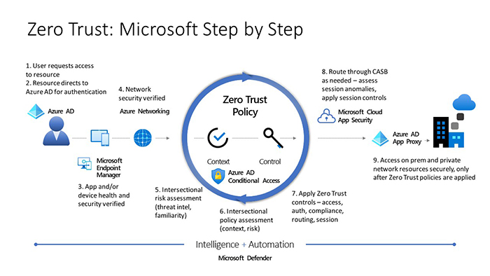 Conform viziunii Microsoft, organizațiile de astăzi au nevoie de un nou model de securitate care să se adapteze mai eficient complexității mediului modern, să accepte locul de muncă hibrid și să protejeze persoane, dispozitive, aplicații și date, oriunde s-ar afla. Acesta este implementat prin adoptarea modelului Zero Trust Security ca principiu fundamental în dezvoltarea soluțiilor de Securitate.