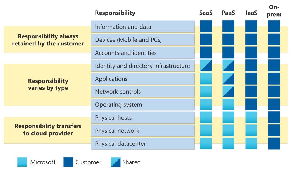 De obicei, furnizorii de cloud sunt responsabili pentru infrastructura oferită ca serviciu (IaaS) sau platformă de servicii (PaaS), în timp ce companiile preiau nivelul securității aplicațiilor.