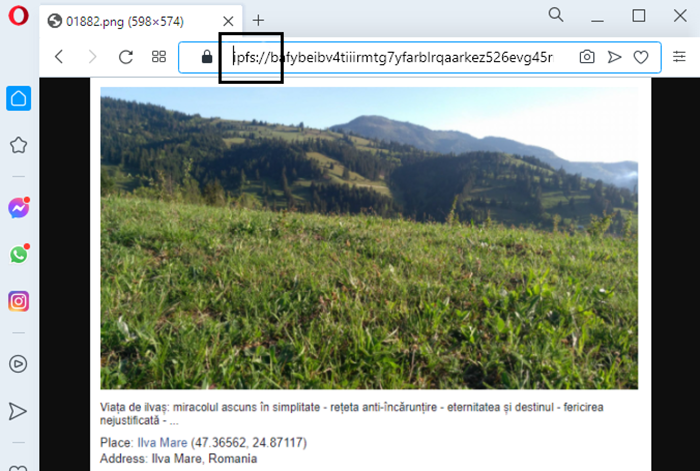 Imagine încărcată în Opera prin protocolul IPFS