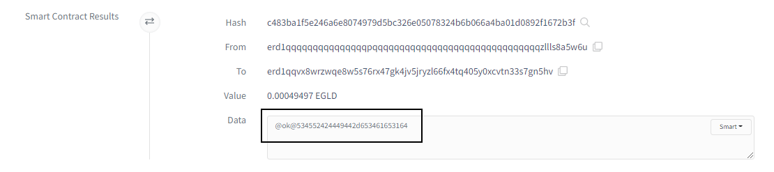 Putem verifica rezultatul tranzacției cu ajutorul Elrond blockchain explorerului. Aici veți găsi un link direct către tranzacția tocmai efectuată.
