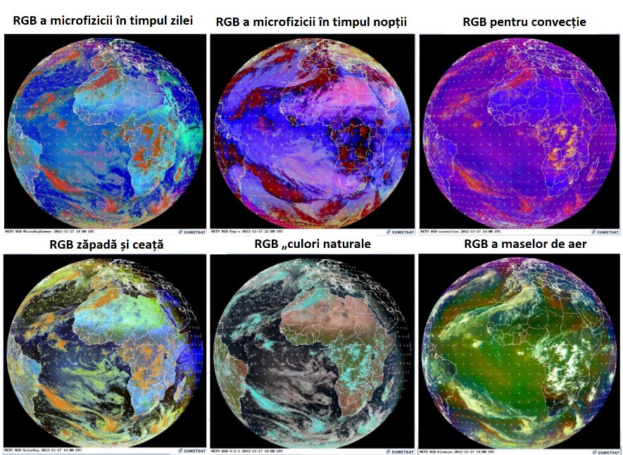 Propunem o serie de articole privind automatizarea prognozei meteorologice pe termen scurt folosind tehnici de învățare automată. Seria a fost deschisă cu o prezentare inițială a datelor satelitare. Continuăm în acest număr prezentarea în detaliu a produselor satelitare de tipul RGB utilizate în cadrul proiectului internațional de cercetare WeaMyL, condus de o echipă de la Universitatea Babeș-Bolyai, în parteneriat cu Administrația Națională de Meteorologie și Met Norway. Termenul de RGB se referă la culorile primare (roșu, verde, albastru, eng. red, green, blue) folosite pentru a crea toate culorile văzute pe ecranul unui calculator. Combinând diferite proporții ale acestor culori primare, pot fi create produse satelitare care să evidențieze anumite particularități ale formațiunilor noroase. În continuare vă prezentăm câteva dintre cele mai utilizate produse satelitare RGB în activitatea operativă de prognoză a vremii.
