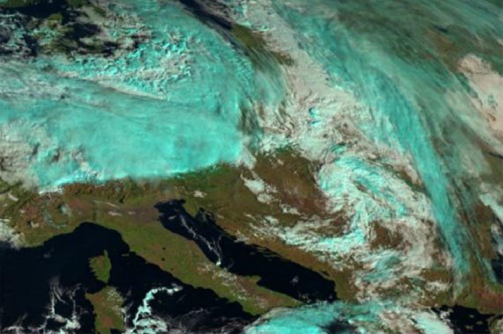 Fig. 16. Imagine Meteosat 8 RGB a maselor de aer - 7 ianuarie 2005 22:00 UTC [1]