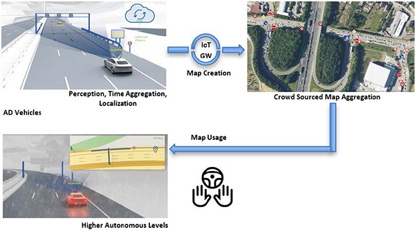Figura 2: Hărți HD pentru aplicația de mașini autonome, care creează și apoi utilizează harta.
