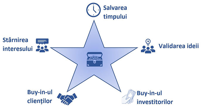 Obținerea "buy-inului" investitorilor. În cazul în care sunt implicați anumiți investitori în sponsorizarea produsului, aceștia ar putea fi convinși prin validarea cât mai rapidă în piață și a obținerii de credibilitate în succesul acestuia.