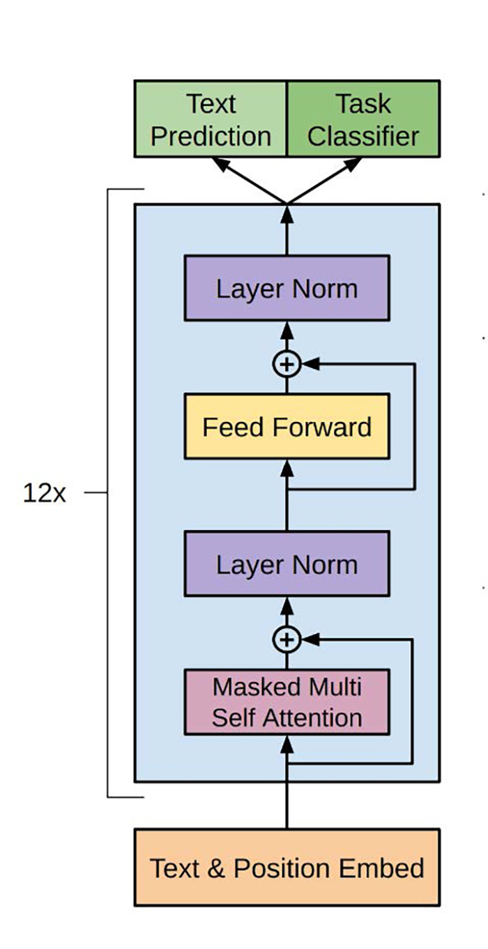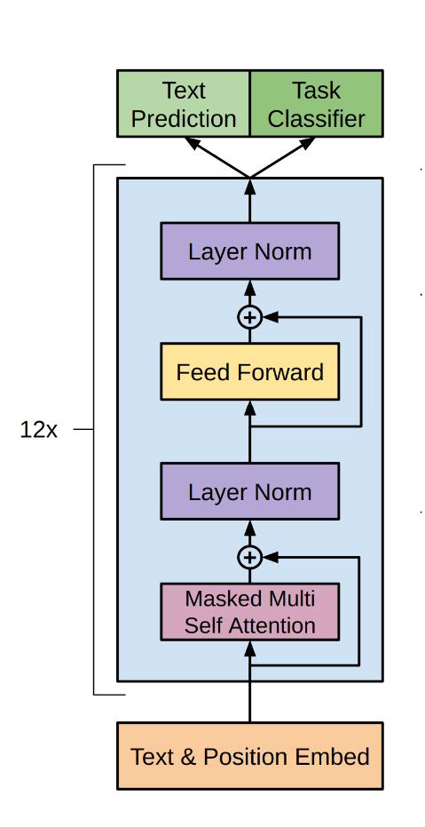 OpenAI a publicat GPT, un verișor de-al lui BERT, în 2018. GPT este, de asemenea, un model bazat pe Transformers, antrenat pe cantități mari de date de text, colectate de pe internet pe un task simplu de modelare a limbajului. Dar s-a descoperit că modelele antrenate în acest mod pot fi apoi antrenate simplu pentru a îndeplini multe sarcini diferite.