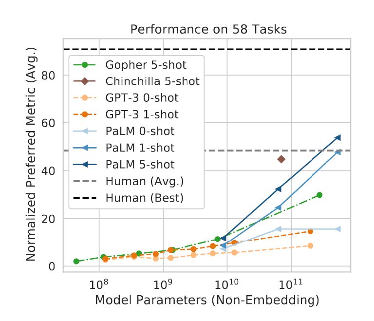 Și cu cât faci aceste modele Transformer mai mari, cu atât mai bune devin. Modelul GPT din 2018 are aproximativ 150 de milioane de parametri. GPT2 a ieșit în 2019 și avea 1,5 miliarde de parametri. GPT3 a ieșit în 2020 și a avut 175 de miliarde de parametri. PaLM, un model foarte asemănător, antrenat de Google, a ieșit în aprilie în 2022, cu 540 de miliarde de parametri. În afară de dimensiunea modelului și a setului de date de instruire, diferențele dintre aceste modele sunt foarte mici.