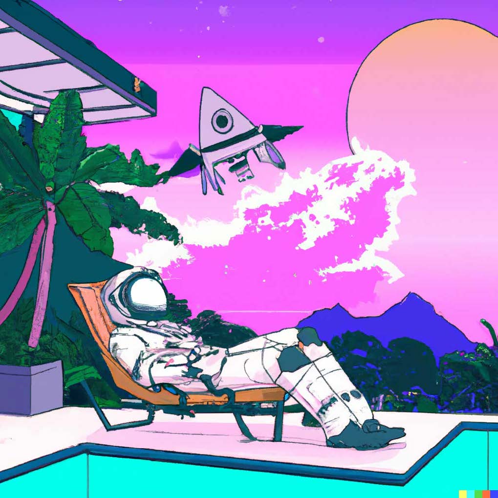 "An astronaut lounging in a tropical resort in space in vaporwave style"