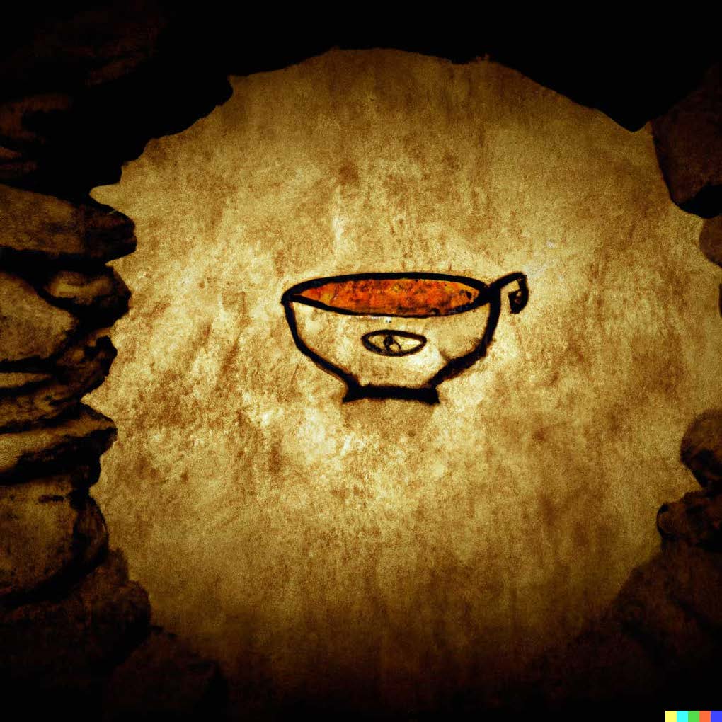 "A bowl of soup that is a portal to another dimension drawn on a cave wall"
