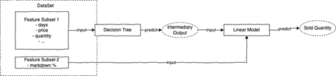 Am înlocuit modelul OLS cu un model compus (stacking model) dintr-o regresie liniară (OLS) aplicată peste rezultatele unui arbore de decizie (GradientBoostingRegressor). Arborele de decizie estimează cererea pentru acel produs, iar modelul de regresie liniară combină această valoare cu valoarea reducerii pentru rezultatul final.