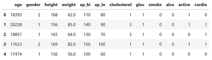 (ap_hi: Systolic blood pressure, ap_lo: Diastolic blood Pressure) Fig. 1. Dataset sample