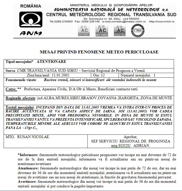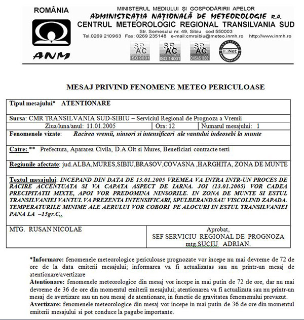 Figura 1 - Primele avertizări generale emise în 2005 (sursa : ANM)