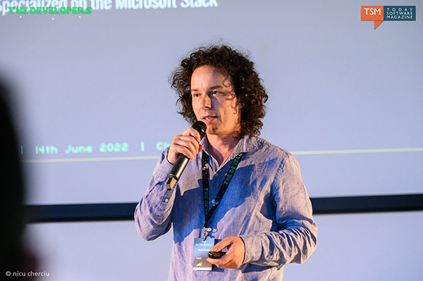 Prezentarea lui Sergiu a început cu menționarea principalelor roluri ale unui software architect : acela de crea Technical Leadership și de a realiza un high level design. Acum 20 de ani lucrurile erau destul de simple pentru a fi un bun arhitect. Era de ajuns să citești câteva cărți începând cu Martin Fowler și deja erai la curent cu principalele partternuri ce pot fi aplicate. În zilele noastre, în schimb, lucrurile au devenit mai complicate. Există nenumărate traininguri, video-uri și conferințe pe această temă. De exemplu, documentația de arhitectură software pentru Azure are 2260 de pagini. Mai demult, software arhitectul se implica în scrierea prototipului software. Nu mai este cazul acum, el seamănă mai mult ca un bucătar care alege dintr-o listă ingredientele ce vor fi folosite. În câteva exemple, Sergiu ne-a arătat că se pot lua decizii care, chiar dacă nu sunt neapărat populare, sunt utile pentru proiect cum ar fi T-SQL. Printre provocările curente sunt frameworkurile de logging și construirea unui sistem de Observability (urmărire a funcționării aplicației) pornind de la acestea. Identity providers reprezintă o altă provocare mai ales că pot apărea costuri mari prin folosirea unor servicii care rezolvă aceste probleme. În concluzie, cantitatea de date, de cărți ce trebuie citite și de informații care trebuie știute va afecta profesia de software architect deoarece va fi din ce în ce mai greu să o practici corect.