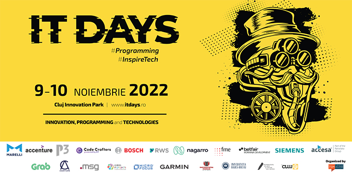 IT Days, 9-10 noiembrie, Cluj Innovation Park. Îmi face plăcere să vă prezint un preview al evenimentului. Pe durata celor două zile veți avea parte de un festival al tehnologiei care va cuprinde prezentări fizice și câteva online, networking, concursuri și concerte la finalul celor două zile.