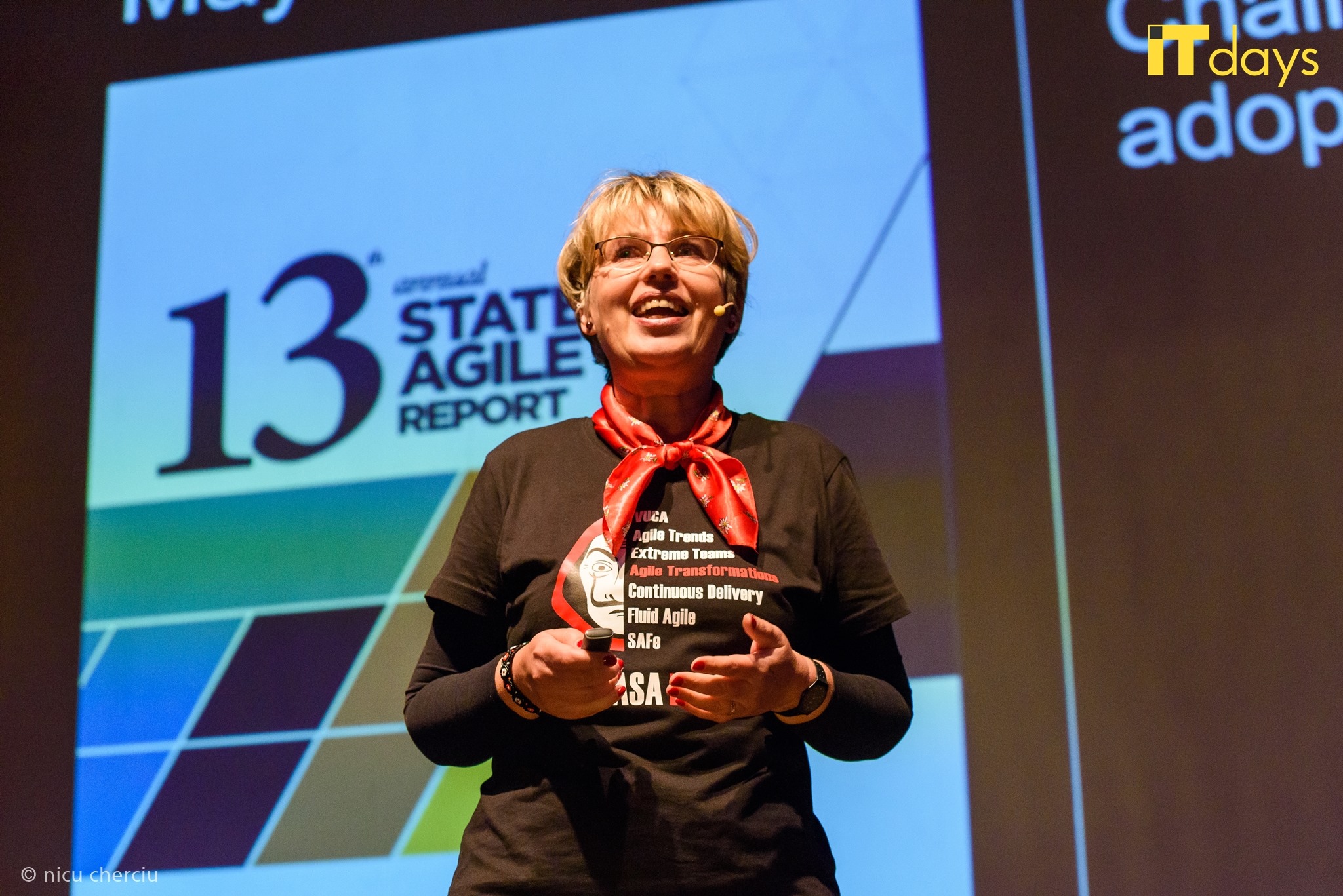 După o nouă pauză de cafea și de vizitare a standurilor partenerilor care se anunță deosebit de interesante, continuăm pe scena principală cu secțiunea Agile. Speakerii sunt printre cei mai buni din acest domeniu. Probabil îi știți deja de la celelalte ediții ale conferinței dar și din revista TSM: Simona Bonghez (Managing partner Colors in Projects), Dan Suciu (Lector la Facultatea de Matematică și Informatică, UBB și partener la Colors in Projects), Bogdan Mureșan, (VP of Technology la Connatix) și Iustinian Șovrea (consultant proiecte organizaționale și leadership).