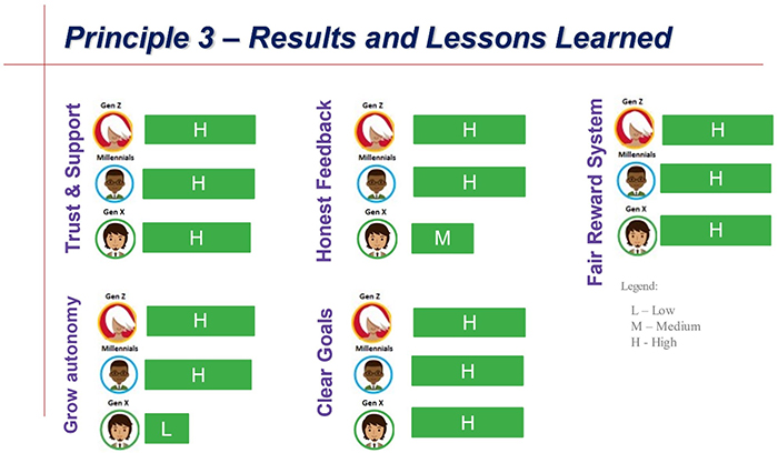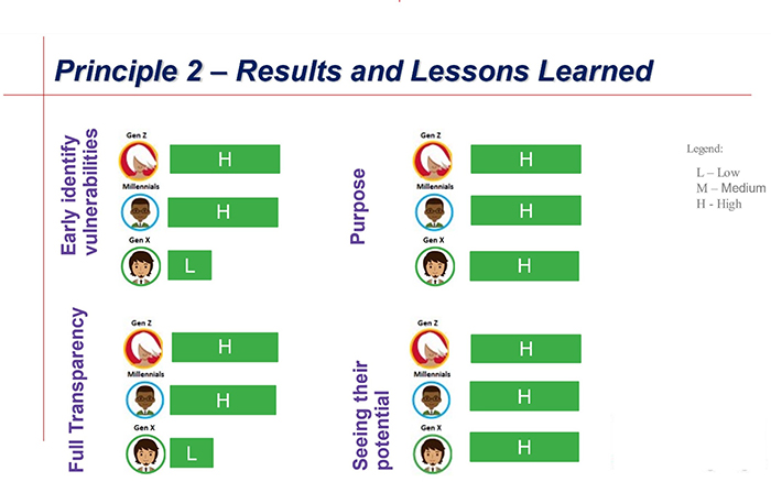 Generațiile care activează în piața forței de muncă au așteptarea ca liderul lor să explice viziunea (target the WHY) în detrimentul unei impuneri legate de modul de execuție al obiectivului (command the HOW).