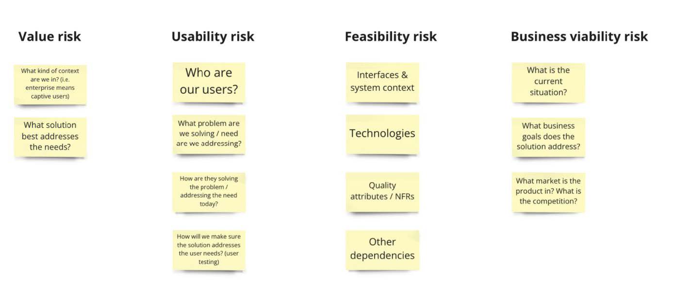 Managementul produselor, după cum spune Marty Cagan, constă în abordarea a patru tipuri de risc atunci când dezvoltăm produse digitale: