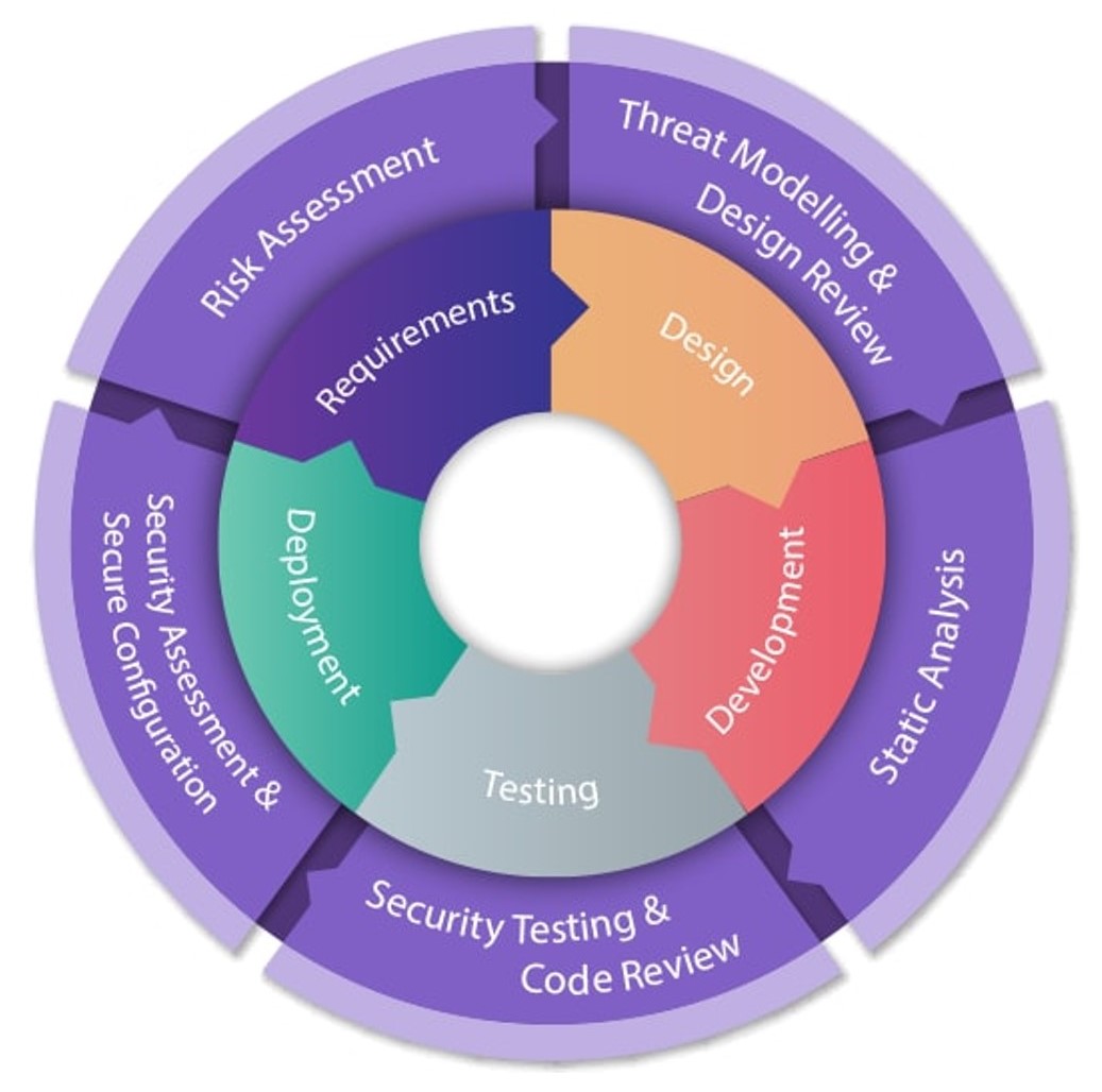 Fiecare etapă din ciclul de dezvoltare e potrivită pentru o anume activitate ce vizează securitatea aplicației. Un singur aspect se justifică la nivelul fiecărei etape și activități: educarea întregii echipe, indiferent de rol, în probleme și tehnici de securitate.