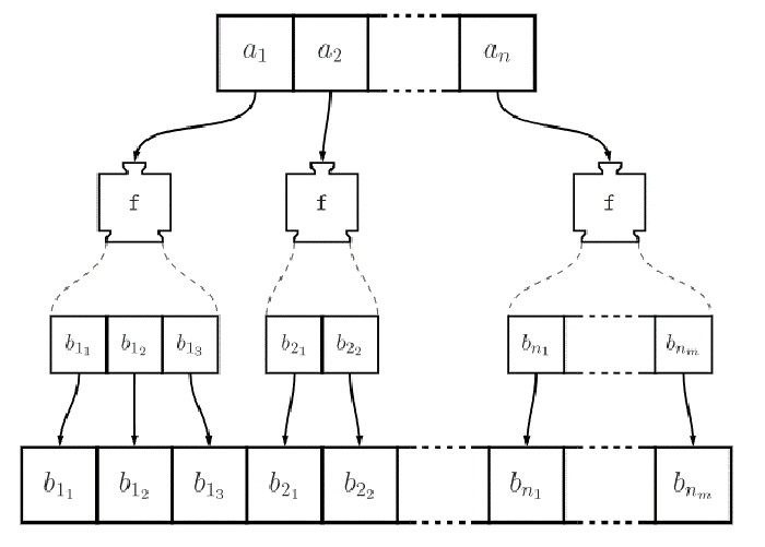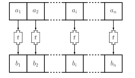 O colecție cu elemente tip A va fi transformată de funcția "f" într-o colecție de tip B: