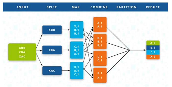 MapReduce este un pattern de programare al frameworkului Hadoop pentru accesarea datelor cu volum mare în Hadoop File System (HDFS). Procesarea este făcută prin separarea volumului de date în bucăți mici, în paralel, prin multiplele servere Hadoop. La final, datele sunt agregate pentru a returna un singur output. La bază, sunt două funcții: Map și Reduce. Acestea se execută secvențial, una după alta. Map preia datele de intrate ca perechi