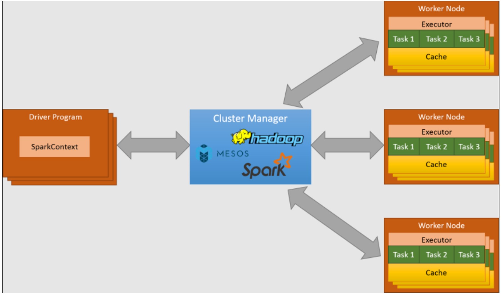 Cluster managerul alocă resurse aplicației. Spark este capabil să managerieze multe clustere. Ele pot fi de mai multe tipuri: Hadoop YARN, Apache Mesos - ultimul depreciat. Mai există un tip, Standalone Scheduler, un Spark cluster manager care permite instalarea Spark pe un set nou de computere.