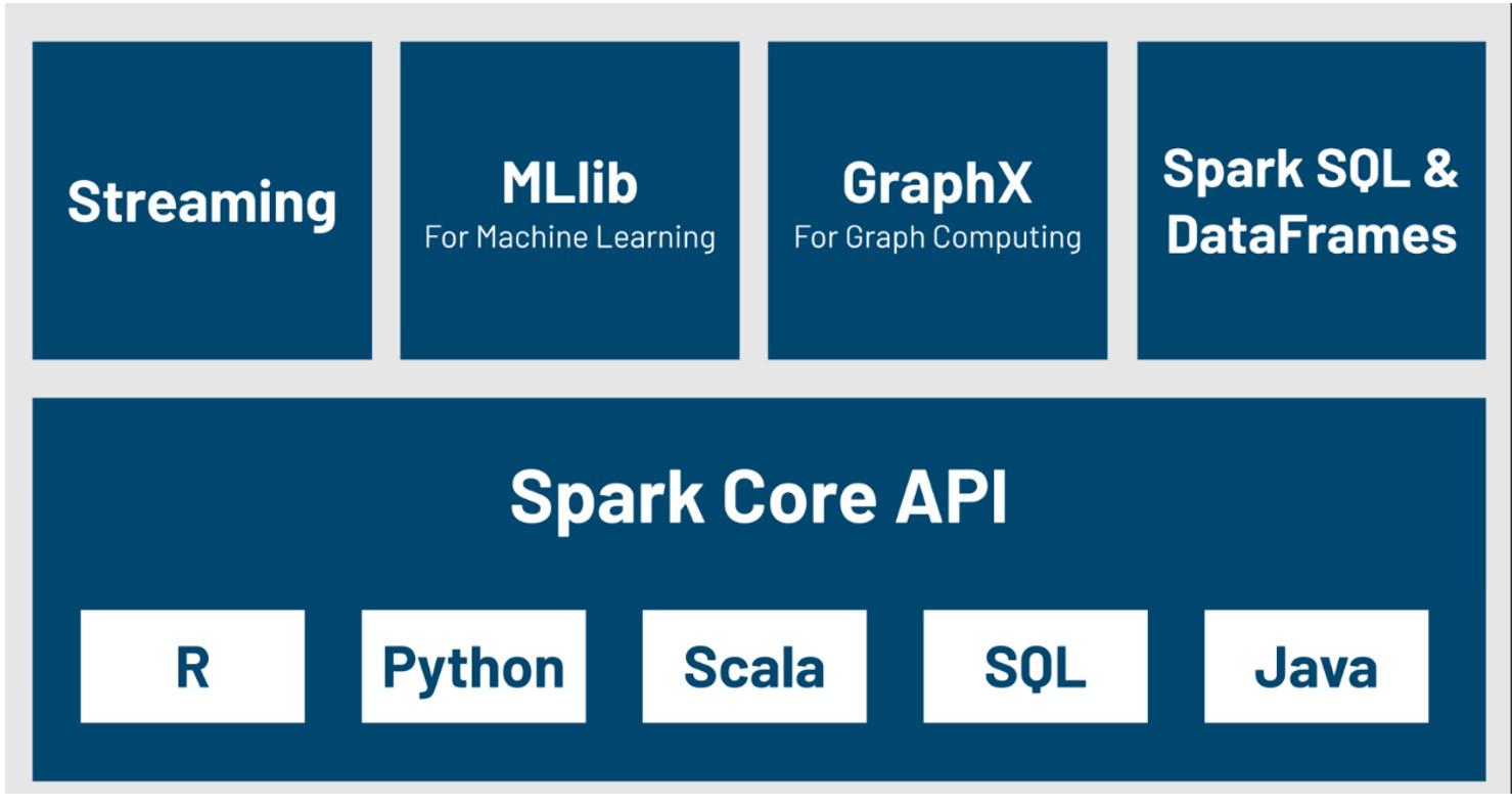 Inițial un proiect la UC Berkeley în 2009, Apache Spark este un framework multi-language de procesare a datelor care poate executa multiple operațiuni asupra unor seturi foarte mari de date, precum încărcarea și analiza lor, data science, machine learning, interogări SQL și streaming. De asemenea, poate distribui procesele între unul sau mai multe computere numite noduri, dar și în clustere diferite, de unul singur sau împreună cu alte tooluri de distributed computing (Hadoop). În termeni tehnici, se mai numește și Unified Computing Engine, în sensul că are API-uri consistente în mai multe limbaje, dar asemănătoare. Sunt ușor de utilizat și au un nivel de abstractizare ridicat. Amintim aici Java, Scala, Python, R, chiar și SQL.