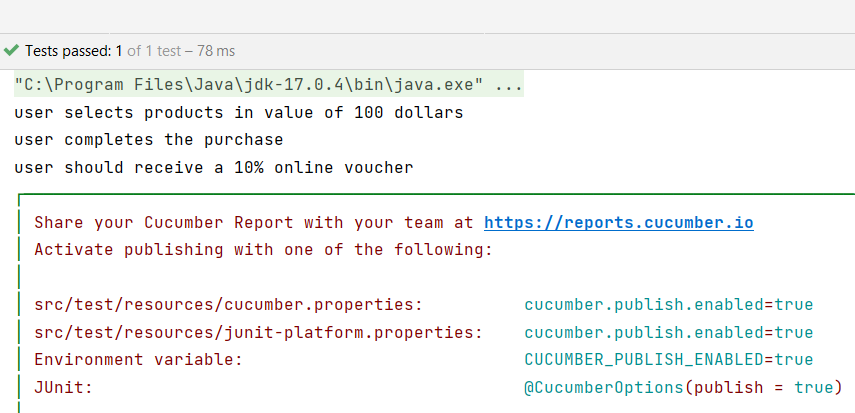 Urmează câțiva pași de bază necesari rulării unui exemplu folosind Cucumber și JUnit 5 într-un proiect Java: