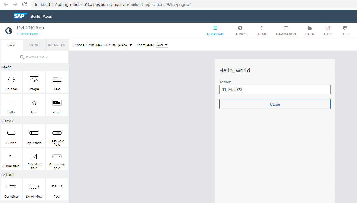 Vom descrie pe scurt cele trei componente, cu toate că atenția rămâne concentrată, în acest articol, asupra primei componente. SAP BUILD Apps este destinat realizării aplicațiilor și este descendentă din Build.me și AppGyver. Cu SAP Build Process Automation se pot reprezenta procese de business și componente precum clasicul workflow, fară a scrie cod pentru acestea. Componenta inovativă îmbină tehnici de inteligență artificială, desigur, simplificate și pe înțelesul tututor. Cea de-a treia componentă, SAP BUILD Workzone ajută la constuirea unei pagini care îmbină coerent, din punct de vedere al designului, mai multe aplicații. Putem asemăna rezultatul obținut cu Fiori Launchpad, care integrează diverse aplicații client din suita SAP.
