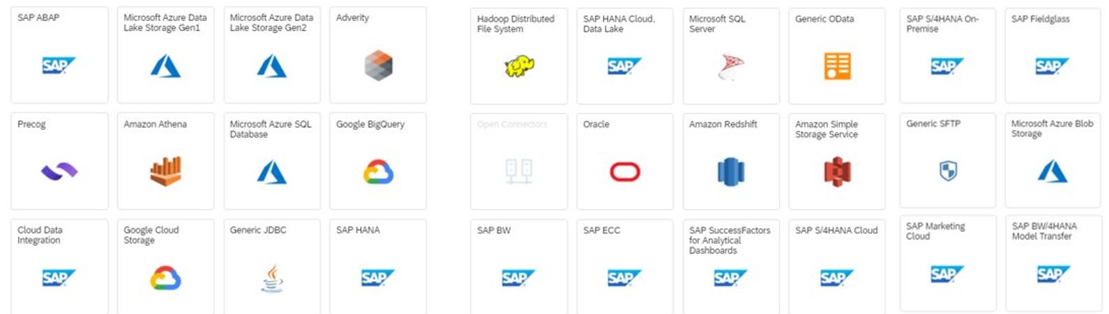 Am fost plăcut surprinși să vedem faptul că SAP Datasphere se poate conecta la un număr mare de surse, cloud și on-premise (help.sap.com), cum ar fi baze de date (Microsoft, Oracle), conexiuni cloud Azure, Google, Amazon și, desigur, surse SAP (BW4, S/4, ABAP etc.)