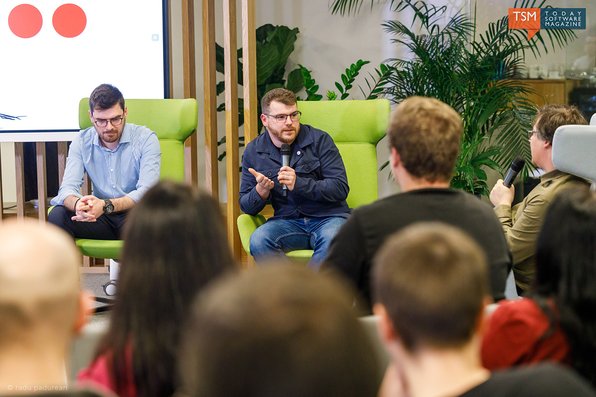 La evenimentul de lansare din luna martie am povestit despre provocările programatorilor de front-end și bineînțeles despre JavaScript. Invitații noștri la panel au fost: