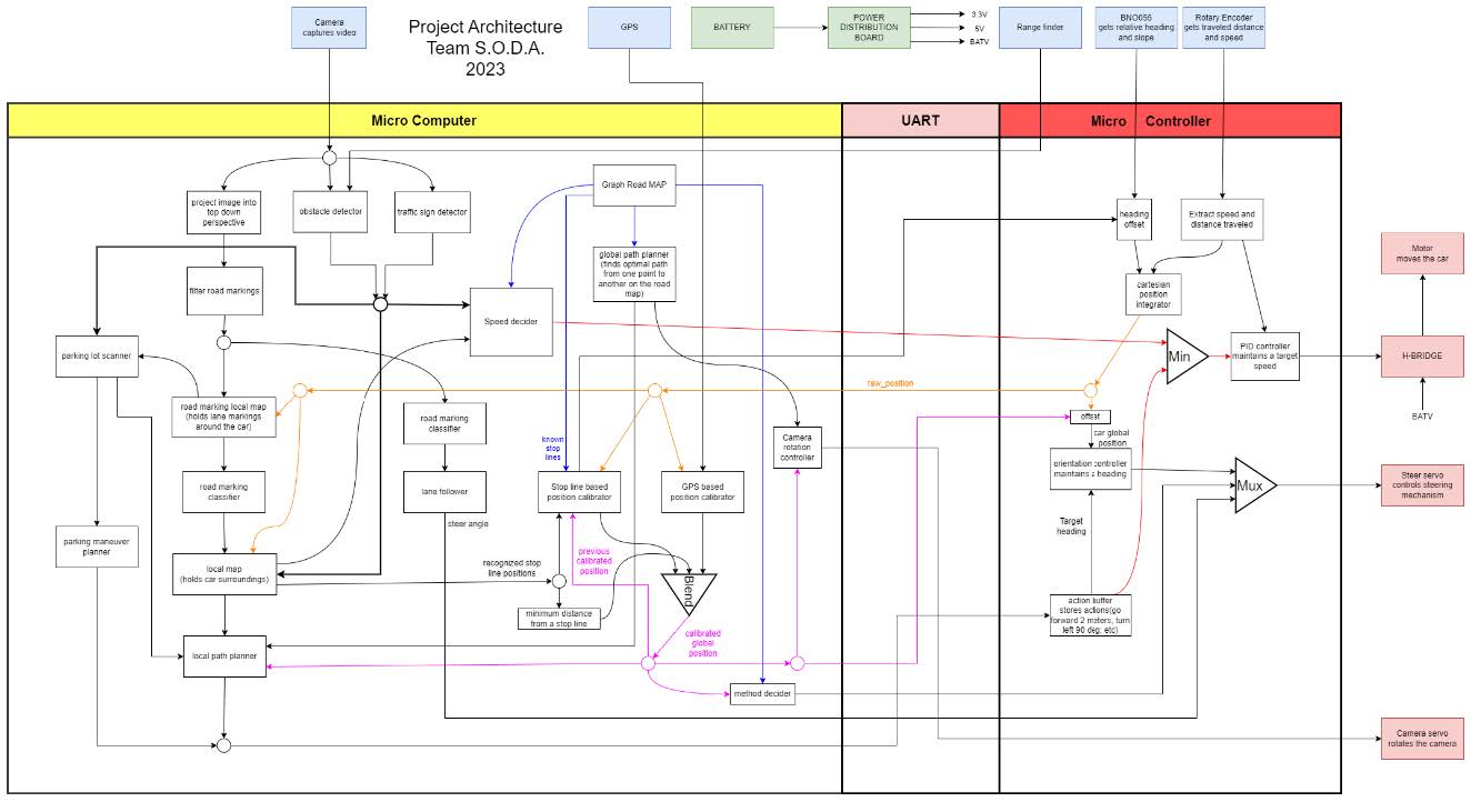 Studenții primesc o mașină la scara 1:10 cu anumite componente de bază, cum ar fi: mecanism de viraj, motor cu controlul vitezei implementat, placă de control al motoarelor (Nucleo), placă de control centrală (Raspberry Pi 4), acces la un sistem de localizare și elemente de comunicare de tip "Vehicle to Infrastructure" (V-to-I).
