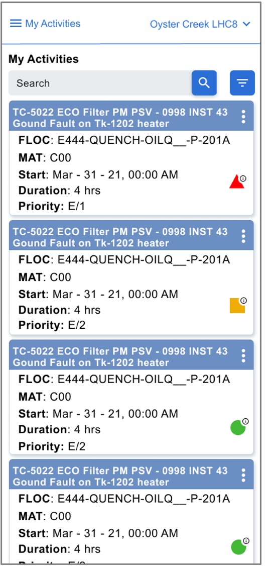 Lucrătorul industrial conectat, Activitățile mele, varianta pe telefonul mobil