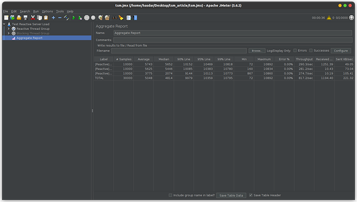 Aflat în antiteză, serverul reactiv se ridică la nivelul așteptărilor în contextul unui număr de utilizatori mare. Avem un randament bun, un timp de răspuns rezonabil și, în urma testelor, am observat o limită de gestionare a utilizatorilor concurenți aproape dublă, 17.000, răspunzând la 54.000 de apeluri concurente cu o rată de eroare inexistentă.